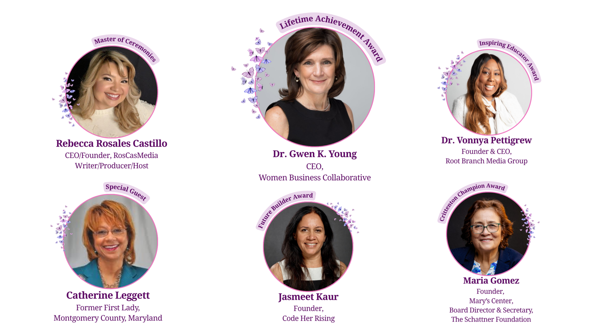 This year’s event will be hosted by Master of Ceremonies Rebecca Rosales Castillo, Founder and CEO of RosCasMedia and an accomplished writer, producer, and host known for her dynamic storytelling and engaging presence. To pass the torch of the Lifetime Achievement Award, Catherine Leggett, former First Lady of Montgomery County, Maryland, will attend as a special guest and inaugural honoree.